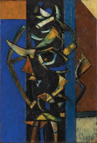 sign. PD MATAL 83, na rubu „MATAL 83. POSTAVA V SEVŘENÉM PROSTORU.“, 25 × 17,3 cm, olej, sololit, rám, na rubu razítko sbírky . Pravost potvrzena Mgr. Martinou Mrázovou.. Provenience: dílo pochází z významné brněnské sbírky.