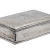puncováno, Německo, 30. léta 20. stol., stříbro, ryzost 800/1000, hmotnost brutto 1510,52 g, vložka z exotického dřeva, lakovaný papír na podední, ryté podpisy herců a pracovníků Wolfram filmu s věnováním zakladateli a vlastníkovi firmy, rozměr 30 × 18 × 10 cm
