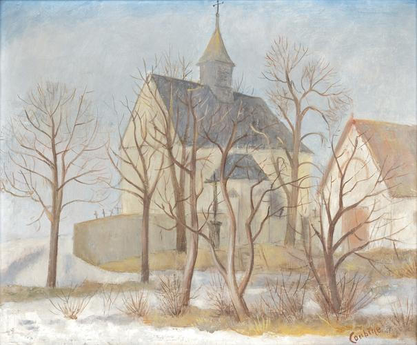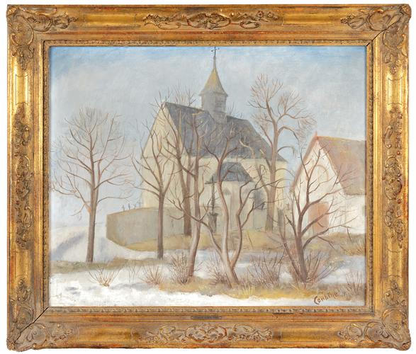 Tvorba Otakara Kubína z 30. let 20. stol., zejména krajiny s jasnou proveniencí a výstavní historií, patří k dlouhodobě vyhledávaným položkám českého moderního umění. Jsou ceněné především práce středních formátů s vyváženou kompozicí a autentickým autorovým rukopisem, k nimž patří i prezentované dílo.; Otakar Kubín, ve Francii užívající jméno Othon Coubine, patří k nejvýraznějším česko-francouzským malířům 1. poloviny 20. stol. Rodák z Boskovic (1883) prožil podstatnou část života ve Francii a právě krajina se stala jeho celoživotním a nejvyhledávanějším tématem – od moravských motivů po provensálské scenérie.; Obraz Němčice u Sloupu spadá do zralé fáze autorovy tvorby 30. let, kdy Kubínova malba stojí na vyvážené syntéze moderní zkušenosti a klidnější, klasicky stavěné kompozice. Typická je pevná skladba krajinných plánů, důraz na rytmus hmot (stromy, horizonty, zástavba) a kultivovaná barevnost s tlumeným koloritem. Přítomnost konkrétní lokality Moravského krasu zároveň připomíná, že i po svém etablování ve Francii se Kubín k domácím námětům opakovaně vracel.