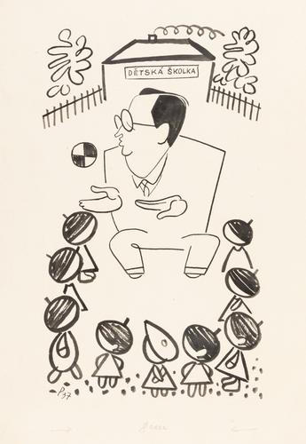 sign. LD P 37, 31 × 19 cm, tuš, papír, pasparta, na rubu pasparty „Ant. Pelcl: Josef Čapek. Koupil od pí Pelclové 1938 za 60 Kč. Čís. 166.“