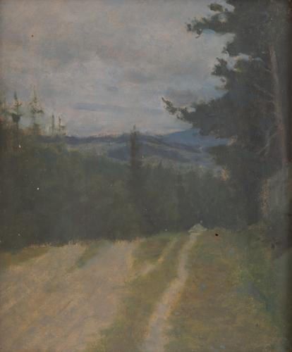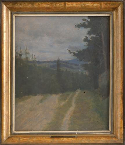 UD kovový štítek Hugo Boettinger 1903, na rubu razítko Hugo Boettinger, zn. tužkou „Cesta lesem“