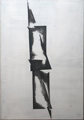 Konfigurace. V šedesátých letech otec při malování chodby „zdobil“ stěny pomocí šablon jednoduchými geometrickými tvary, různě se překrývajícími trojúhelníky a úsečkami v „bruselském“ duchu. Pamatuji si, že šablony byly ještě po mnoha letech uloženy na půdě, k mému zklamání jsem je však nyní již nenašel. (2. 7. 2013). Vyšel jsem z této vzpomínky, kterou ale bylo nutné usměrnit v tom smyslu, že jsem tvary redukoval na trojúhelníky, a ty seřazoval a překrýval nezávisle na původním podnětu. Proces sám potom přinášel různé možnosti významové i vizuální (labilita, zraňování – sv. Šebestián...).