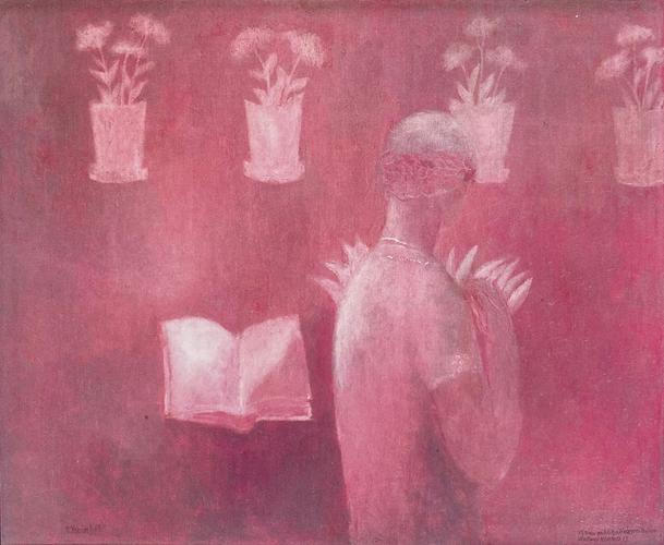 sign. PD Vladimír Komárek 83, PD Milému příteli Rostislavovi Vaňkovi, na rámu přípis Dívka s květinami