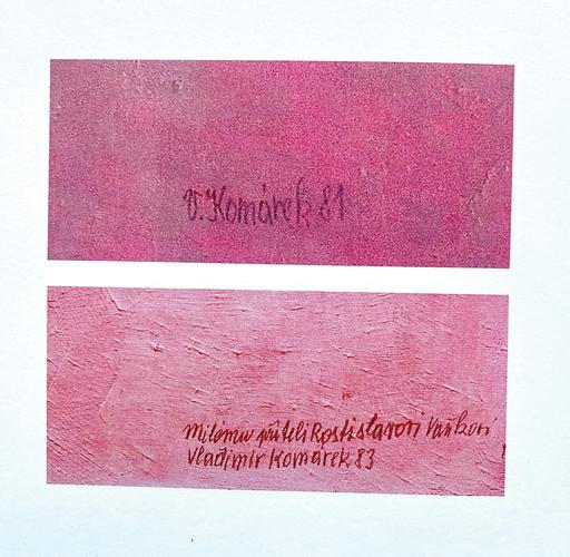 Srov.: Hlušička J., Vladimír Komárek obrazy. Praha: AKROPOLIS, 1995, pod č. 153.
