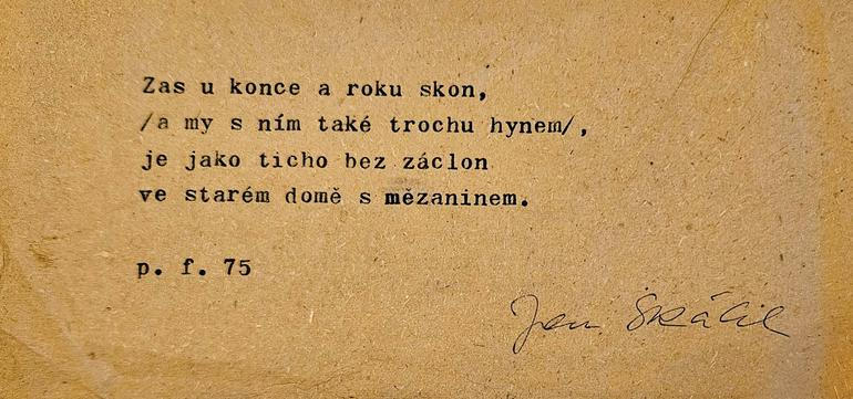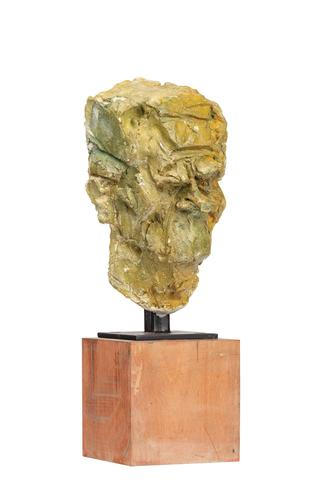 K nejvýznamnějším sochařům naší moderní doby patří nepochybně oba novoměstští rodáci Jan Štursa a Vincenc Makovský. První dovršil starou éru jdoucí od baroka přes Myslbeka až k Rodinovi a Bourdellovi, druhý naopak otevřel brány sochařství nejnovějšímu sahajícímu prakticky až podnes. Novátorské počiny Makovského let třicátých mají vskutku světové parametry a jako jeden z prvních zařadil k výsostným materiálům cement, beton a surové železo. Komplexní pojetí uměleckého díla rozvíjel i ve složitých dobách poválečných, která vedle roviny oficiální zahrnovala naštěstí i zázemí rodinná, přátelská a někdy skrytá. Šedesátá léta pak úžasně propojila výtvarníky s básníky, filmaře s architekty, divadelníky se skladateli a to vše vykvetlo v úžasná umělecká díla. Stopy oněch přátelství nejednou shledáváme i ve zcela konkrétních počinech jako tomu je příkladně i v tomto ryzím portrétu básníka Jana Skácela. O víc jak generaci starší sochař tu načrtl hutnou a sonorní tvář s výraznou básníkovou anatomií, charakteristickým obočím, pod nímž plaménkuje variačně bohatá mimika bytostného poety, jenž vtiskl charakter celé své generaci jednadvacátníků. Doklady archívní povahy jako jsou osobní péefka jen stvrzují autenticitu mimořádně vzácného artefaktu ze sbírky známého kunsthistorika dr. Jiřího Hlušičky, dlouholetého ředitele Moravské galerie v Brně.